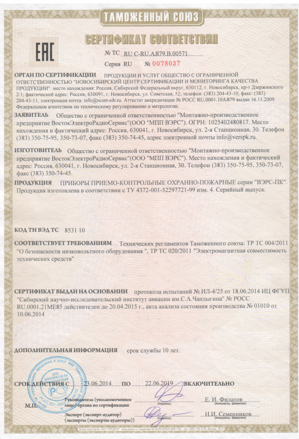- Прибор приемно-контрольный охранно-пожарный ВЭРС-ПК 16М версия 3.2