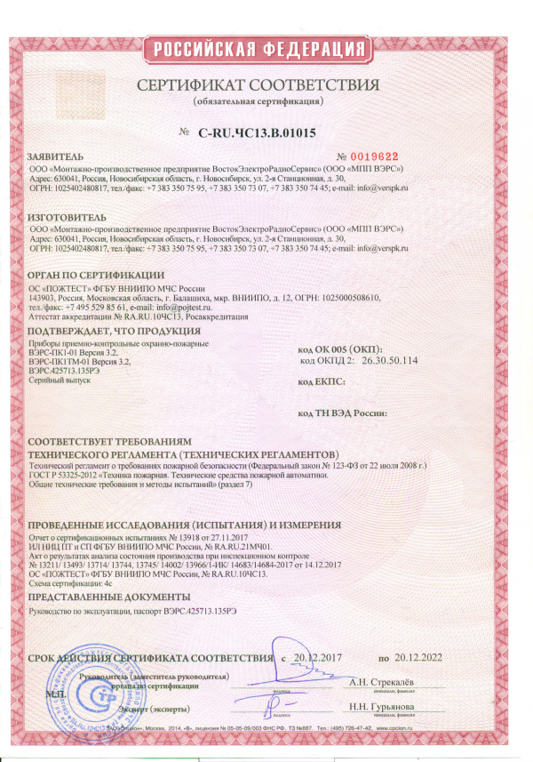 - Прибор приемно-контрольный охранно-пожарный ВЭРС-ПК1ТМ-01 версия 3.2