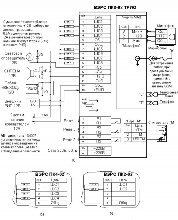 - выходные цепи реле ПЦН приемно-контрольных приборов ВЭРС-ПК и подобные им.