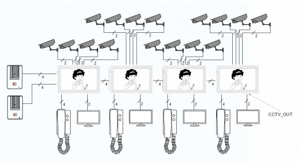- Возможность подключения до 4-м мониторов в одной системе с широкими возможностями адресного интеркома (серии Lea, Selina, Rocky, Marilyn, Violet).