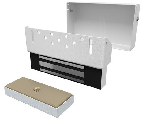 - в комплект входит корпус с электромагнитом, ответная металлическая пластина и кожух замка;