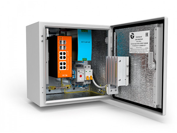 Всепогодный узел коммутации для обеспечения работы до 8-и IP-видеокамер с питанием по технологии РоЕ/PoE+, организации группового канала передачи данных по волоконно-оптической сети, а также поддержания заданного температурного режима при эксплуатации.