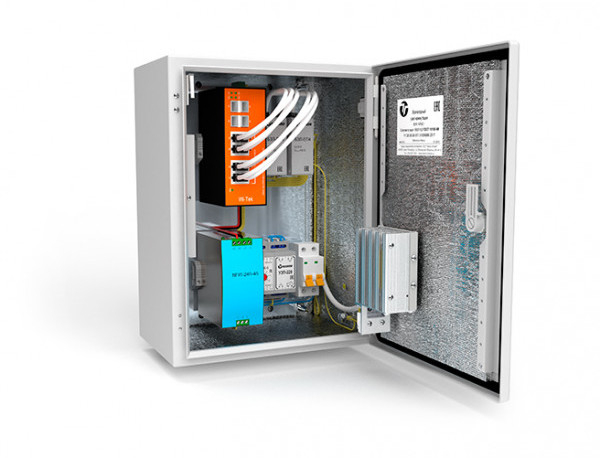 Всепогодный узел коммутации для обеспечения работы до 8-и IP-видеокамер с питанием по технологии РоЕ/PoE+, а также поддержания заданного температурного режима при эксплуатации. Оборудован устройством защиты электропитания УЗП-220 и двумя блоками защиты БЗЛ-ЕП4 для защиты от импульсных перенапряжений 8-и портов локальной сети Ethernet 10/100/1000 Base-TX.