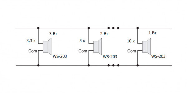 WS-203(B) - речевой (цвет - чёрный) настенный широкополосный накладной оповещатель с встроенным трансформатором, переключаемой мощностью 1/2/3 Вт и возможностью подключения к высокоомному выходу сопротивлением 3300/5000/10000 Ом (с питанием 100В) предназначен для воспроизведения сигналов ГО и ЧС, речевых сообщений и фоновой музыки в системах пожарного оповещения.