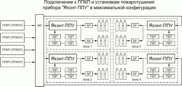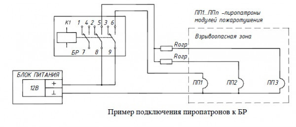 Для увеличения нагрузочной способности выхода тушения ППУ используется БР (увеличение количества подключаемых к ППУ исполнительных устройств - пиропатронов или электромагнитных клапанов).