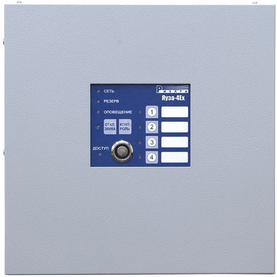 ППКОП, 4 шлейфа сигнализации, 2 искробезопасных цепи питания (12В, 100 мА), журнал на 2000 событий, контролируемый выход оповещения (12В, 500 мА), RS-485, АКБ 7А/ч, [Exia]IIC X