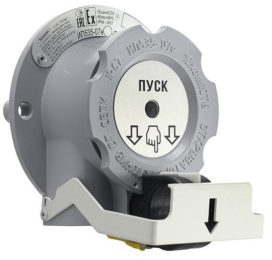 УДП ИП535-07е ПУСК И1 (серый) РМРС - устройство ручное дистанционного пуска взрывозащищенноё судовое, серого цвета, с активацией двойным действием, (НО) контактом, степенью защиты (IP67), с надписью - "Пуск" предназначено для запуска исполнительных механизмов систем пожаротушения, дымоудаления и т.п. при выдергивании приводного элемента и применяется на предприятиях химической, нефтегазодобывающей, нефтегазоперерабатывающей, судостроительной отраслей и взрывоопасных зонах других производств.