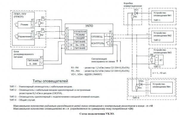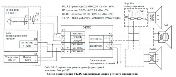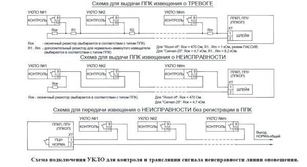 - контроль цепей оповещения (цепи от УКЛО до УО) на обрыв и КЗ током обратной полярности – в дежурном режиме;