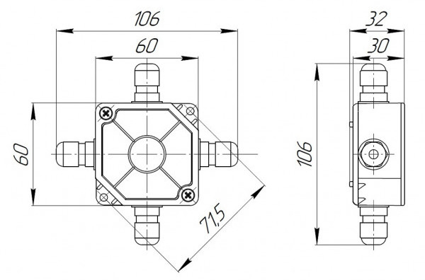 УС-4-Ех - устройство чёрного цвета соединительное искробезопасное взрывозащищенное (0ExiaIICT6), степенью защиты (IP65), корпусом из ABS-пластика, для подключения кабелей (проводов) диаметром (3 - 5,3мм; под заказ - от 4,5 до 8мм) и длиной - не менее 1м извещателей пожарных (ИП 103-10/В) или аналогичных устройств к шлейфу сигнализации.