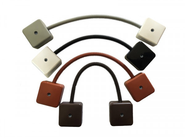 УС-4х4/500 гибкий переход - кабель в пластиковом гофрорукаве, длинной 500мм, 2 соединительные коробки по 4 пары клемм, с степенью защиты (IP40), температурой эксплуатации от -60 до +700С предназначен для монтажа систем охранно-пожарной сигнализации, теленаблюдения, а также монтажа других цепей постоянного или переменного тока, устанавливаемых на подвижных конструкциях (окна, двери, распашные ворота).