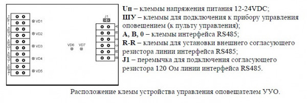 Устройство осуществляет связь (до 1000м) с оповещателем по интерфейсу (RS-485) с гальванической развязкой и контролем линии связи (формирует на входах управления сигнал о неисправности).