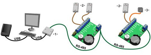 Работает с ключами Touch Memory DS1990А и с RFID картами/брелками (с эмуляцией ТМ).