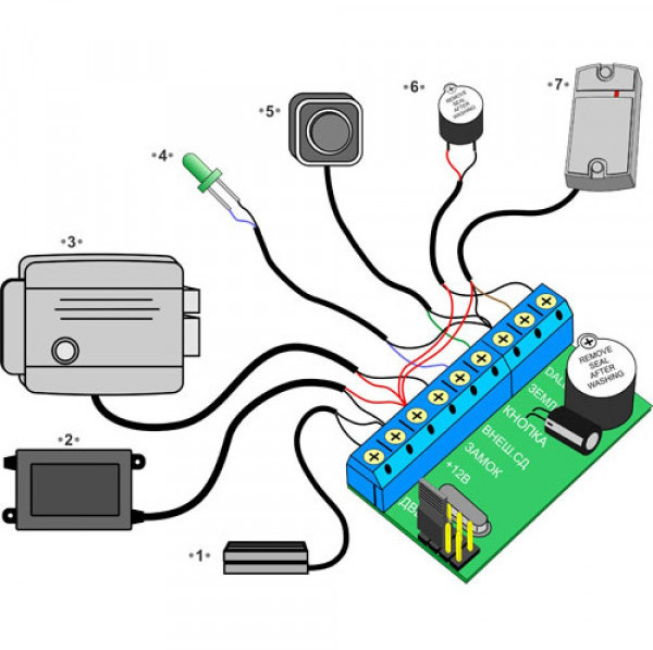 - Датчик двери (НО или НЗ, автоматическое определение типа датчика).