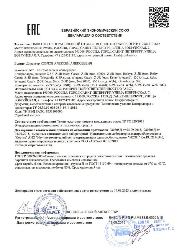 - Контроллер для ключей Z-5R (мод. Relay Wiegand)