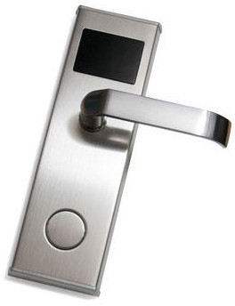 Электронный дверной замок открывается снаружи по бесконтатной карте или механическим ключом, а с внутренней стороны двери достаточно только нажать ручку.