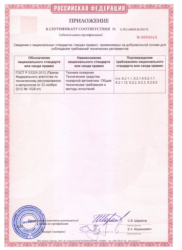Сертификат соответствия на оповещатели световые и светозвуковые ПЛАЗМА.