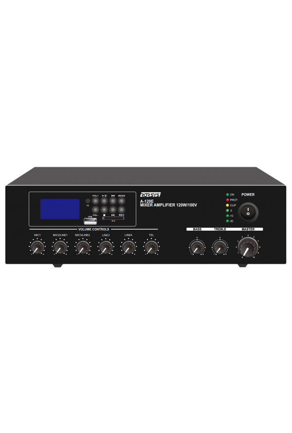 Микшер-усилитель с медиаплеером A-120E является отличным решением от бренда RORSYS при организации системы фонового/сопроводительного музыкального вещания и/или голосового оповещения на объектах небольших и средних площадей. Благодаря встроенному плееру может воспроизводить звук без сторонних источников. Модули Bluetooth, FM-тюнера и порты USB/SD-card покрывают все возникающие потребности в источниках музыки. Усилитель прекрасно подойдёт для ресторанных залов, кафе, магазинов, АЗС и т.п.