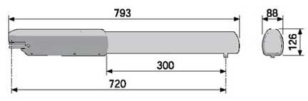 A 3000 A - универсальный (право- и левосторонний) самоблокирующийся электромеханический линейный привод для распашных ворот со створкой шириной до 3м, весом до 800кг, напряжением питания - 230В, с специальным стальным крепежом.