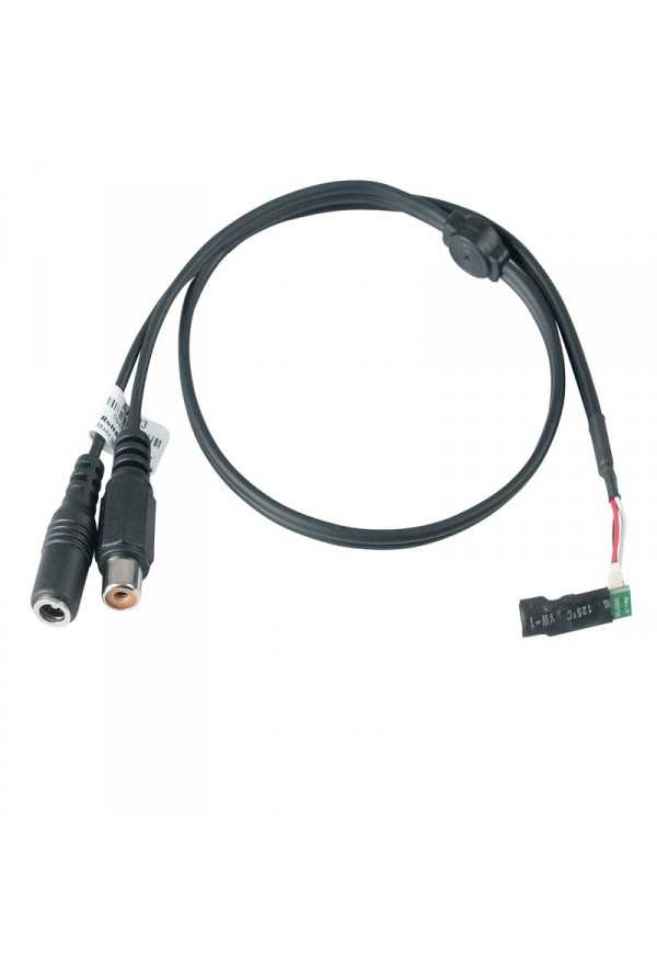 Миниатюрный микрофон высокой чувствительности для скрытого монтажа. Длина кабеля (аудио и питания) 50 см. Разъёмы Розетка питания, аудио розетка 3,5 мм. Питание 12VDC.