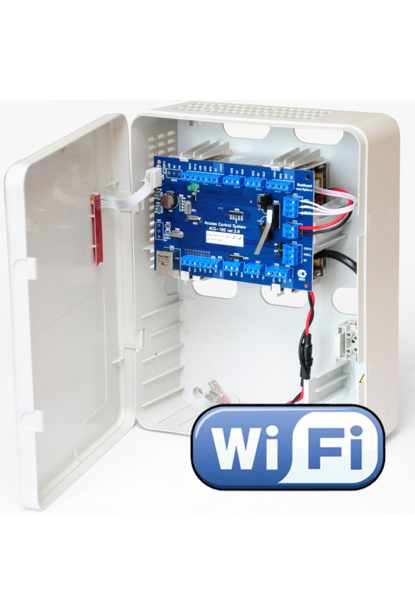 ACS-102-CE-В(WF) - cетевой (Ethernet и CAN-HS) контроллер доступа с функцией охранной сигнализации, c Wi - Fi модулем, в пластиковом корпусе, с встроенным импульсным блоком питания, отсеком для АКБ (1х7Ач), 8-ми программируемыми реле, на 64000 пользователей, 60000 событий, с креплением на горизонтальную/вертикальную поверхность.