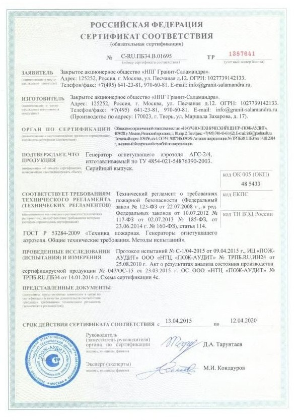 Генератор огнетушащего аэрозоля