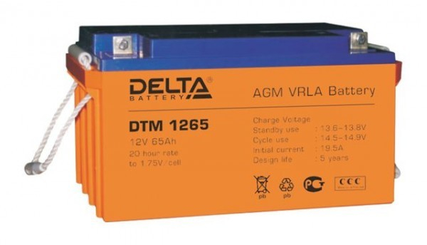 Аккумулятор Аккумулятор 12 В, 65 Ач DTM 1265 Delta