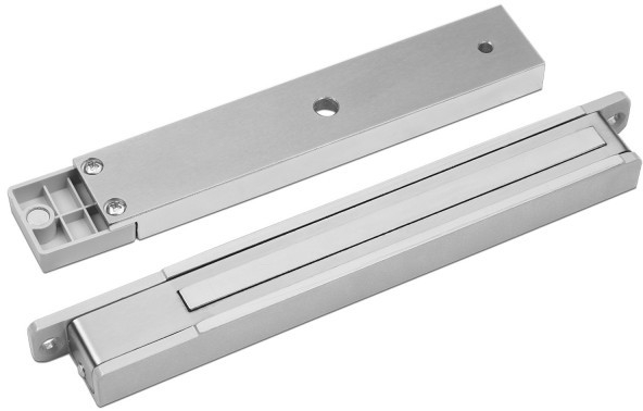 AL-200 Premium серый - малогабаритный серого цвета электромагнитный, степенью защиты (IP20), накладной (удерживающий, однодверный) замок с крепёжной планкой (М200 по заказу) или/и уголком (230х35х30 по заказу), без отсека для установки контроллера, в корпусе из алюминиевого сплава, с усилием удержания 200 кгс, напряжением питания - 12 или 24В (указывается при заказе), током потребления - 0,35А, диапазоном рабочих температур от -20 до +40оС, с габаритными размерами - 230х30х19,5мм, массой комплекта - 1,45 кг предназначен для запирания открывающихся наружу лёгких деревянных и пластиковых дверей толщиной от 35 до 55мм.