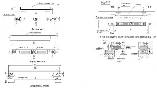 Предусмотрена возможность эксцентриковой регулировки взаимного расположения якоря и замка для облегчения установки.