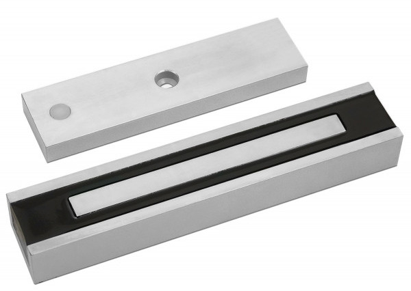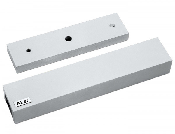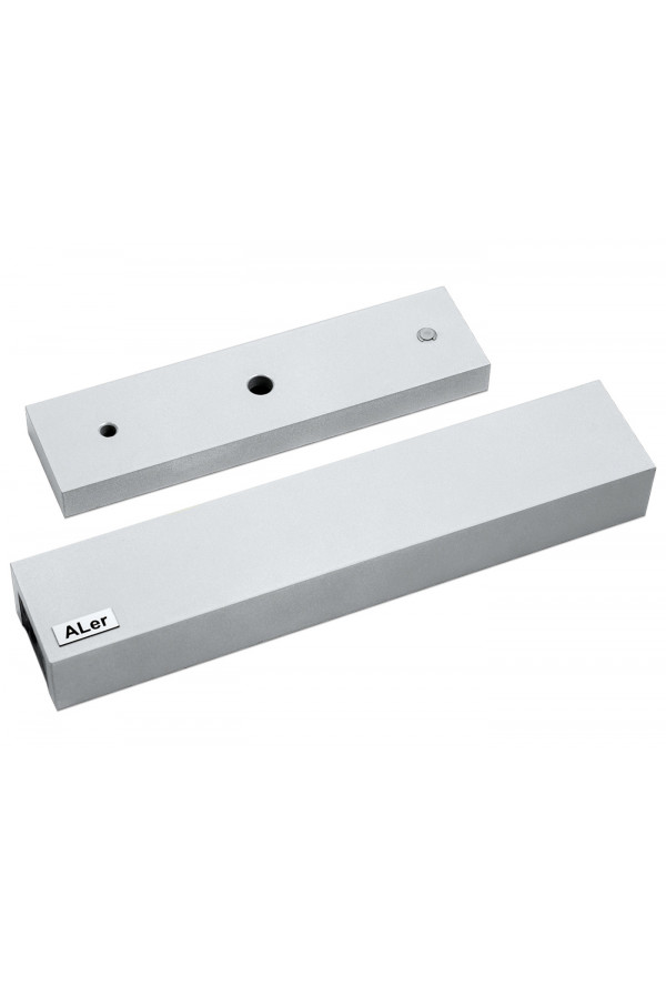 AL-350FВ-М-01 - малогабаритный электромагнитный, влагозащищённый (IP67), накладной (удерживающий, однодверный) замок с крепёжной планкой или/и уголком (215х47х47 по заказу) в комплекте, без отсека для установки контроллера, в корпусе из алюминиевого сплава, с усилием удержания 350 кгс, напряжением питания - 12/24В, током потребления - 0,58А, диапазоном рабочих температур от -60 до +50оС, с габаритными размерами - 215х46,5х43мм, массой комплекта - 2,9 кг предназначен для запирания открывающихся наружу деревянных и металлических дверей толщиной от 35 до 70мм.