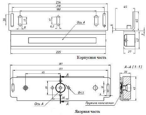 225х42х27 (замок), 162х42х14,5 (якорь)
