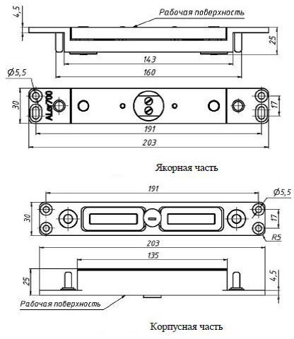 Предусмотрена возможность эксцентриковой регулировки взаимного расположения якоря и замка для облегчения установки.