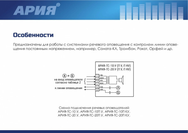 Особенности трансформаторной линии позволяют использовать оповещатели серии АРИЯ-ТС на большой удаленности от основного блока.