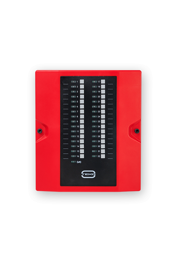 - 32 программируемых трехцветных светодиодных индикатора по ГОСТ Р 53325 для отображения состояния зон, направлений пожарной автоматики, зон оповещения;