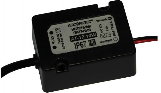 AT-12/10W - источник стабилизированного питания DC 12 V, номинальный ток нагрузки 1 A, IP67.
