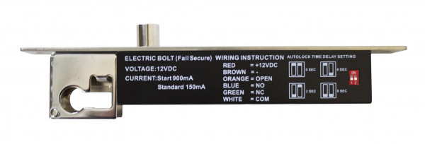 AT-EL600 - электромеханический соленоидный замок закрытого типа, врезной, с возможностью подключения кнопки выхода и установки личинки механического открытия/закрытия замка, оцинкованная сталь, 12В.