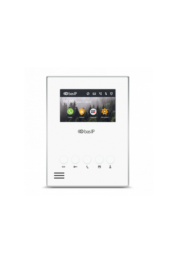 Видеодомофон индивидуальный, Touch Screen 4,3 , c памятью (фото и видео) на SD карту (до 32GB), с возможностью подключения системы безопасности, аудиоинтерком между домофонами. Просмотр 8 IP камер. Возможность подключения дополнительной трубки SP-AU. Питание PoE и + 12 В (БП в комплект не входит). Поддержка SIP P2P. Размер  135х185х25 мм. Цвет белый.