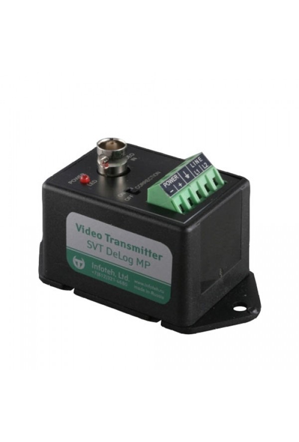 Активный одноканальный передатчик видеосигнала с расширенным температурным диапазоном использования - (-40...+50) С предназначен для работы с любым типом кабеля витая пара . Дальность передачи - до 2500 метров. Встроенная многоуровневая защита по всем вх вых цепям защита по питанию, защита по входу видео , защита по линии, грозозащита. Встроенная схема подавления помех. Вход видео - под BNC, выход на линию - под клеммы. Напряжение питания - 24V AC, (9 ... 15 V DC. Ток потр. - не более 25мА. Габариты - 85х42х50 мм.