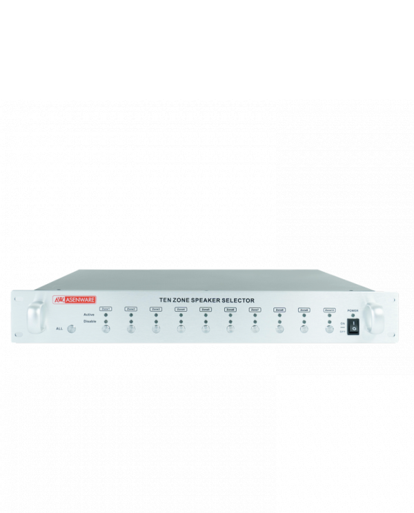 (10 линий оповещения, 100 В) и приема сигналов управления и речевой информации о возникновении пожара, порядке эвакуации и других действиях от контроллера системы оповещения AW-EVC100 и её передачи на речевые оповещатели.