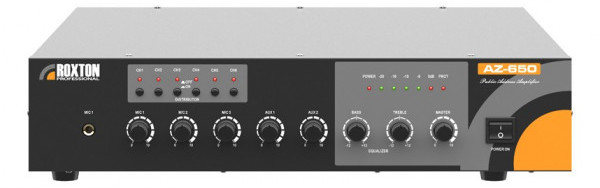 AZ-650 - трансляционный 6-зонный микшер - усилитель выходной мощностью 650 Вт предназначен для микширования и усиления звукового сигнала с целью его дальнейшей трансляции на громкоговорители 4 Ом или с питанием 70/100 В.
