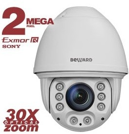 2 Мп, 1/2" КМОП SONY Exmor R, купольная скоростная 5-360° /сек, 0.002 лк (день)/0.0002 лк (ночь)/0.0001 лк (DSS), 2хWDR до 120 дБ , H.264/MJPEG, 1920x1080 (Full HD), 25 к/с, 2D/3DNR, установленная microSD (32 ГБ), IP66, от -45 до +60° C, варифокальная подсветка до 150 м /p