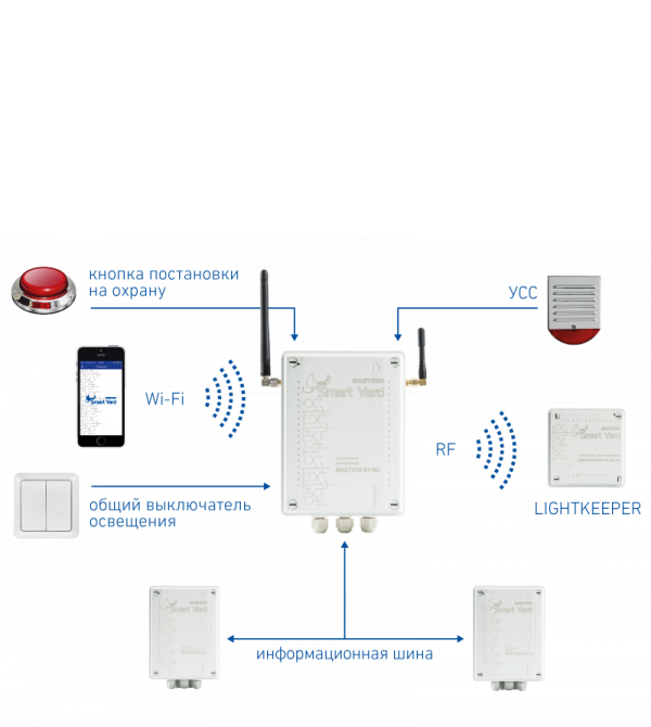 Помимо этого в памяти BASTION SY-NC хранится полная база ключей доступа, журнал событий системы и заданные сценарии взаимодействия подсистем.
