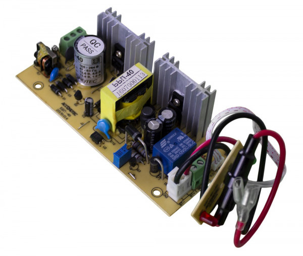 Блок бесперебойного питания без корпуса. Uвх. AC 165-264 V, Uвых. DC 13.6 0.2V, 4A (ном.). Габаритные размеры 130 x 55 x 40 мм. Масса брутто 178 г.