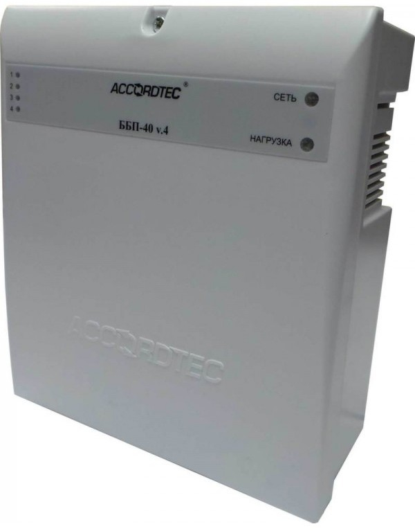 Блок бесперебойного питания ББП-40 v.4 исп.1, 4-х канальный предназначен для бесперебойного электропитания устройств и приборов охранно-пожарной сигнализации, систем видеонаблюдения, контроля доступа и активных датчиков напряжением 12В постоянного тока.