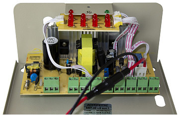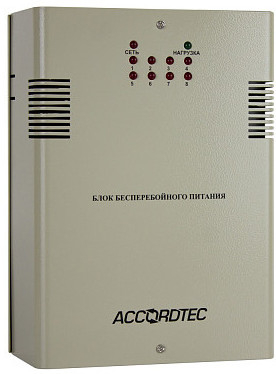 Блоки бесперебойного питания в металлическом корпусе под АКБ 7 Ач со встроенной платой распределения нагрузки по 8-ми каналам с защитой каждого канала от перегрузки по току и КЗ. Ток нагрузки (ном) : 6А (8 x 0.75 A).