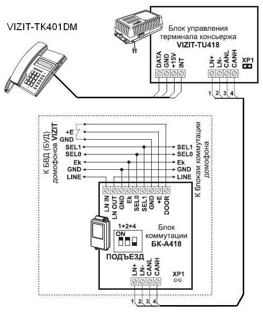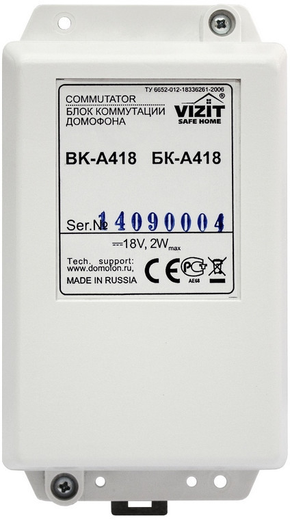 предназначен для работы как составная часть пульта консьержа VIZIT-ПК800 в составе VIZIT-TK401D, VIZIT-TU418 + четыре БК-A418;
