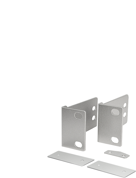 BKT-DSA100D-F - кронштейны (крепёжный комплект) для установки 2-ух цифровых усилителей DSA-100D/DV или 1-ого цифрового усилителя DSA совместно с блоком трансформаторов OPT-100D в стандартный 19'' аппаратный шкаф .