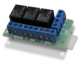 12-ти вольтовый трехканальный релейный модуль преобразования сигналов типа ОК в сигналы типа сухой контакт . Работает с приборами Соната , источниками питания Импульс , и оборудованием сторонних производителей.