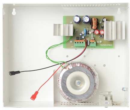 Блок представляет собой сетевой источник электропитания с понижающим трансформатором, импульсным стабилизатором и АКБ, включенными по буферной схеме. Поставляется в металлическом корпусе исполнения IP20.