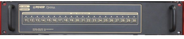 БРЗ-20/2 - блок расширения зон предназначен для расширения на 20 зон оповещения (с 31 по 50) в составе системы автоматического речевого оповещения и музыкальной трансляции «РЕЧОР Гранд».
