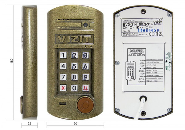 БВД-314RCP - блок вызова домофона до 200 абонентов (через БУД-302М) используется совместно с блоком управления БУД-302М, БУД-302К-20, БУД-302K-80 как составная часть многоквартирного домофона VIZIT.